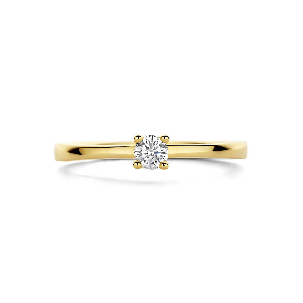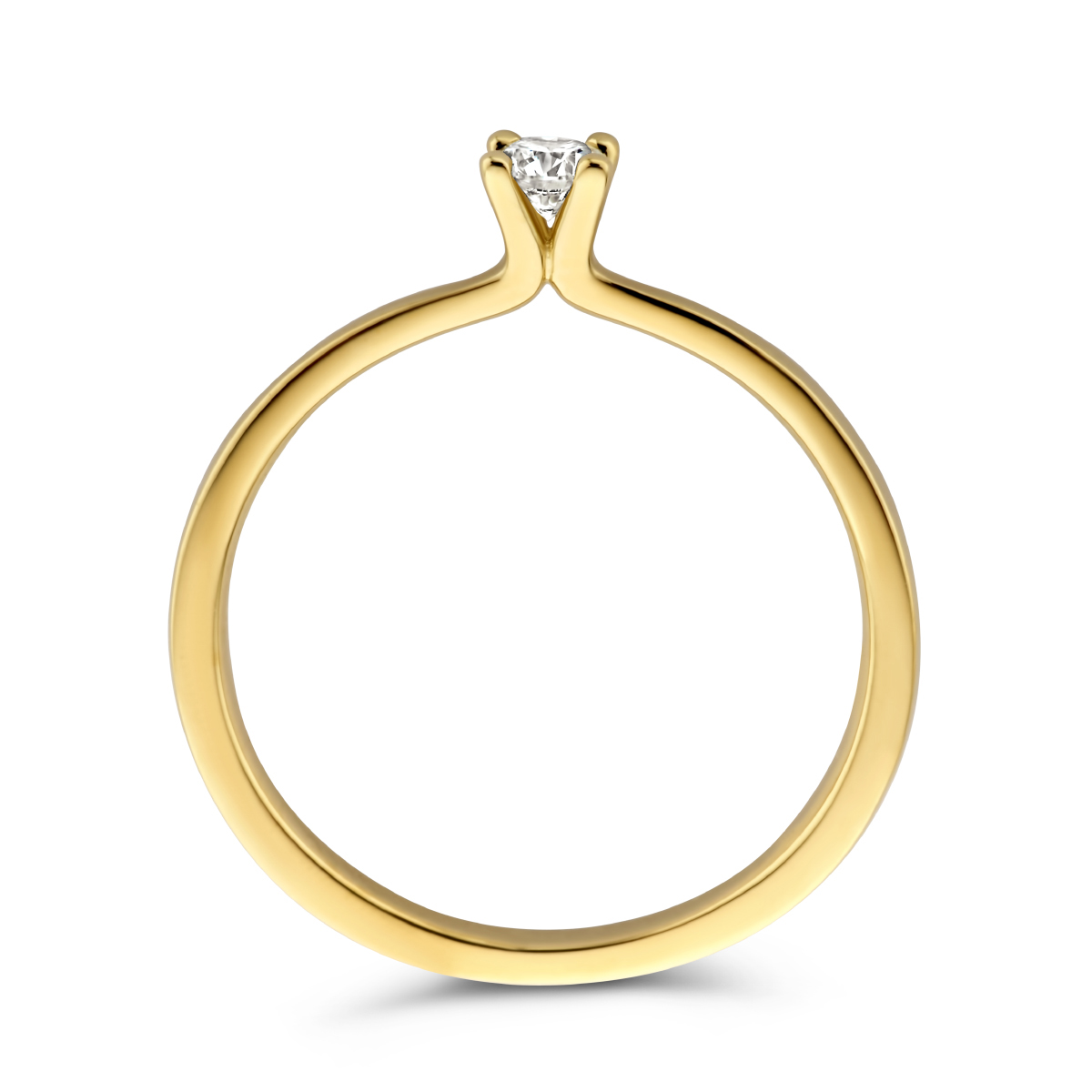 14k Geelgouden ring uitgevoerd met een schitterende diamant. De ring heeft een breedte van 3.5mm.
