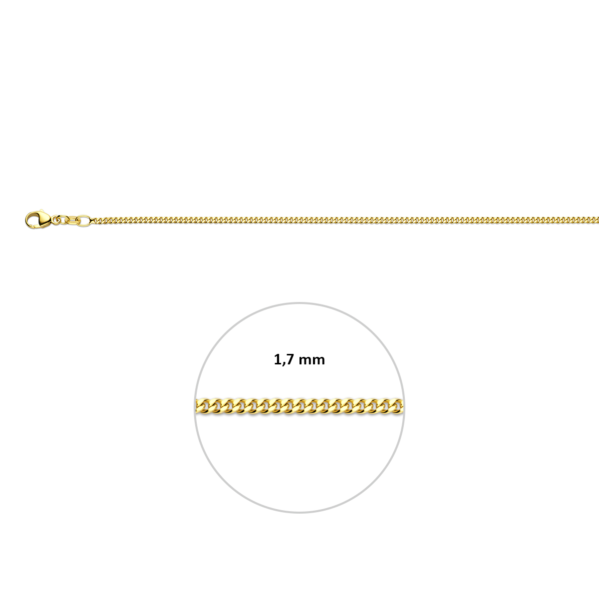 Geelgouden lengte-artikel met gourmette schakel. De schakelbreedte is 1.7mm.