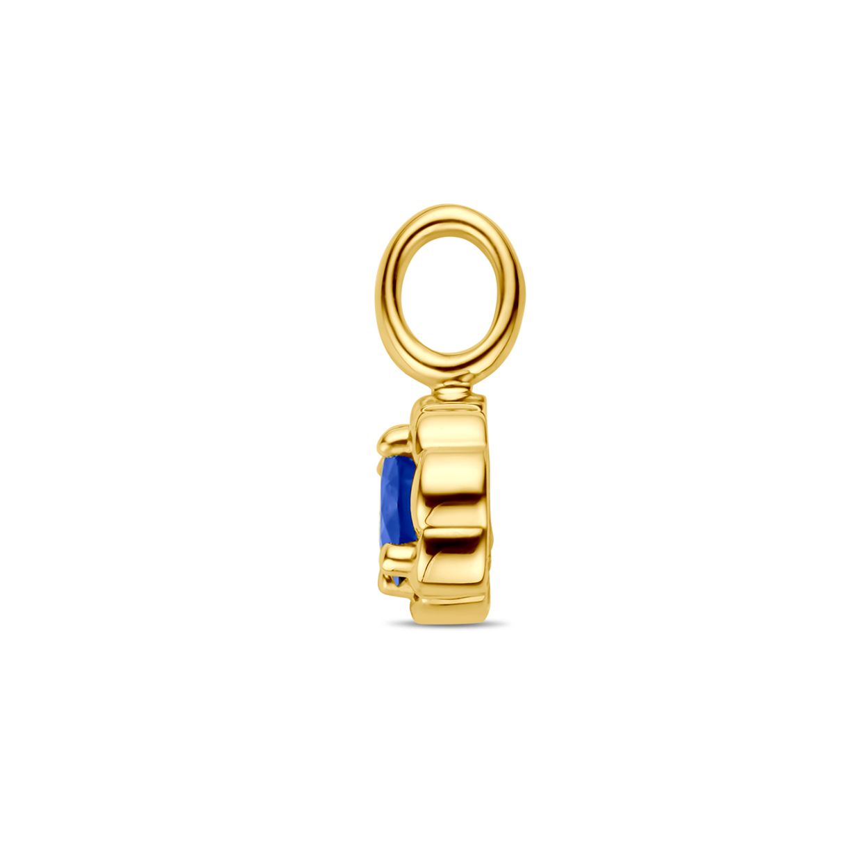 14k Geelgouden hanger uitgevoerd met saffier. De hanger heeft een totale hoogte van 10.5mm.