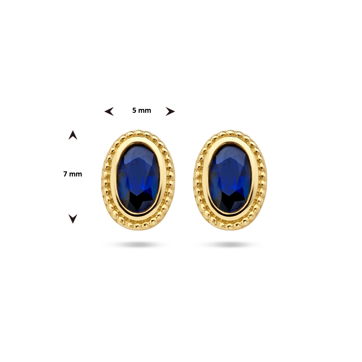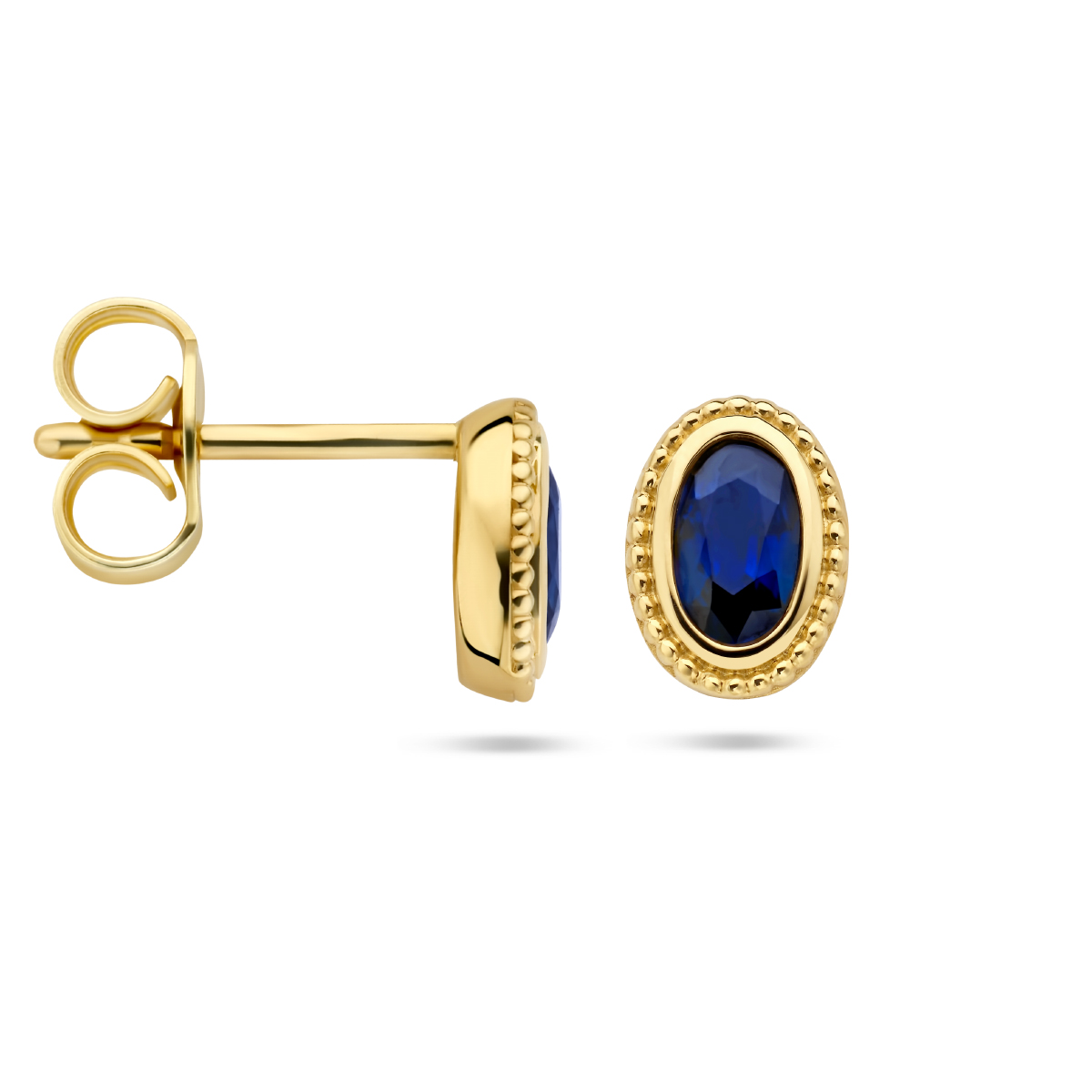 14k Geelgouden oorknoppen uitgevoerd met schitterende saffier. De oorknoppen hebben een afmeting van 7x5mm. De saffier heeft een steengewicht van 0.62ct (2x 0.31ct).