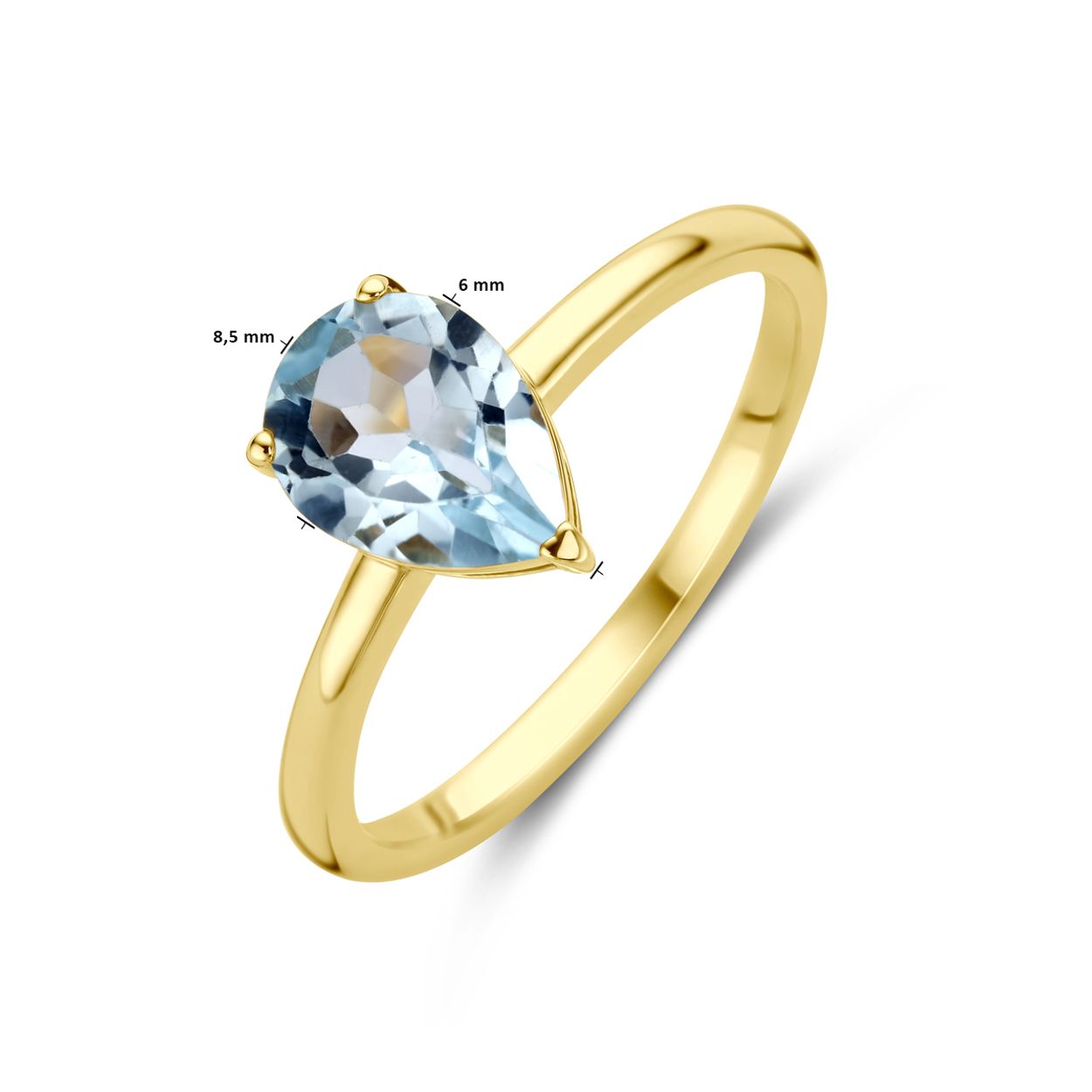 14k Geelgouden ring uitgevoerd met blauw topaas. De ring heeft een afmeting van 8.5x6mm.