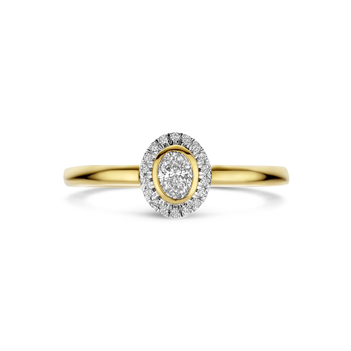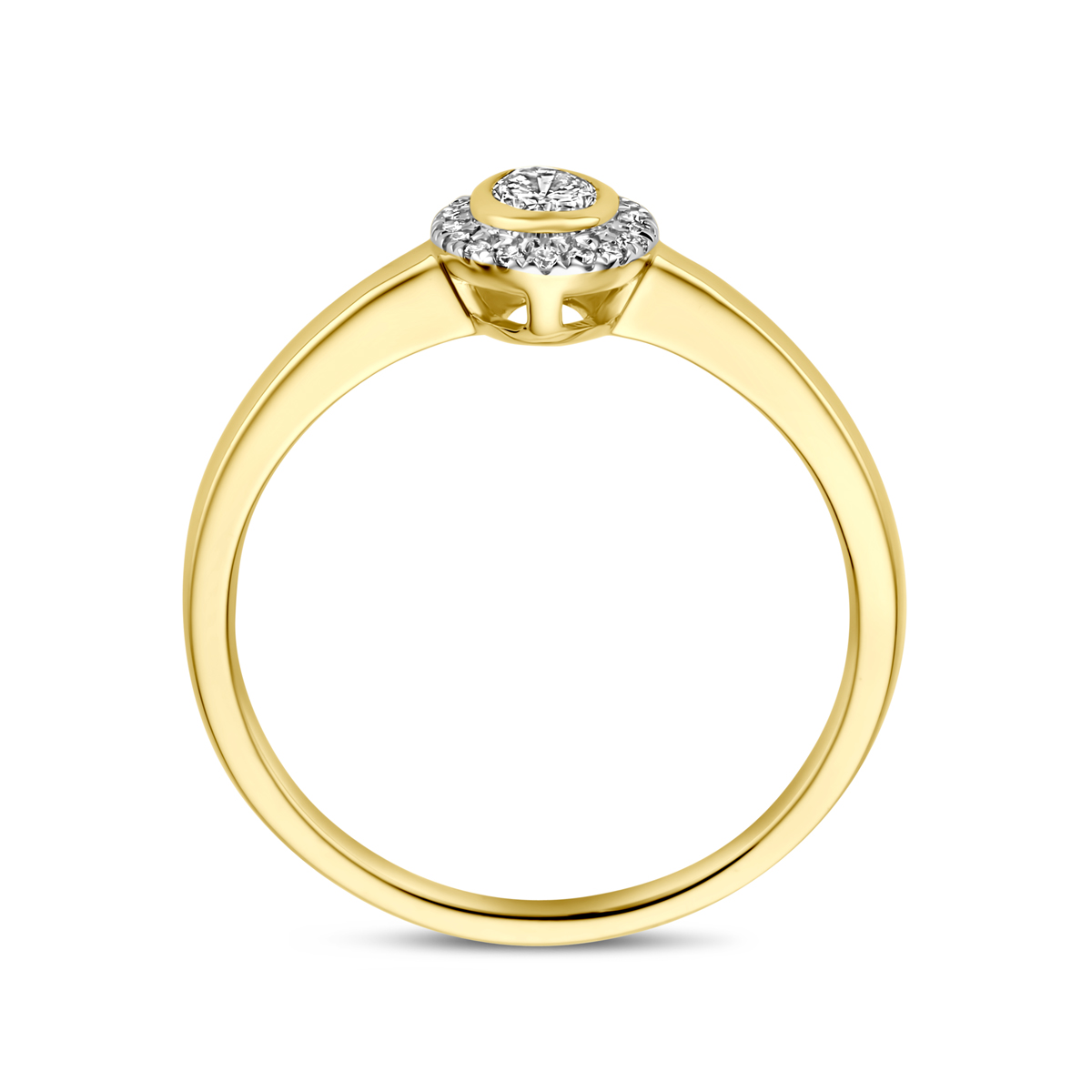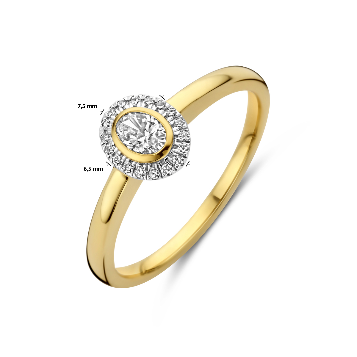 14k Geelgouden ring uitgevoerd met diamant. De ring heeft een breedte van 7.5mm. Het totale diamantgewicht is 0.25ct.