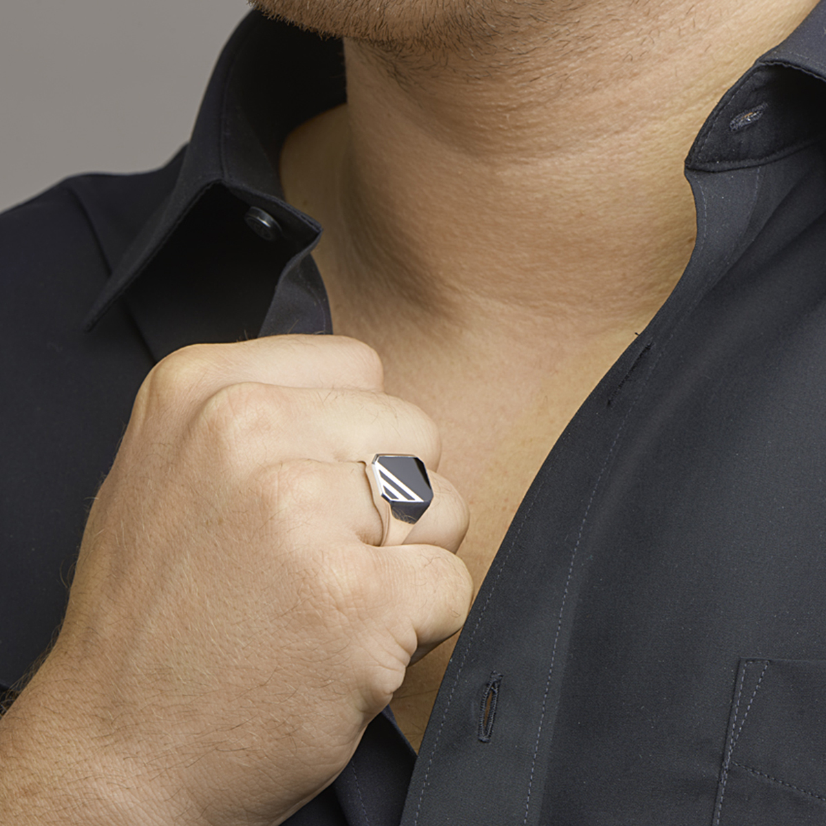 Zilveren zegelring met onyx.